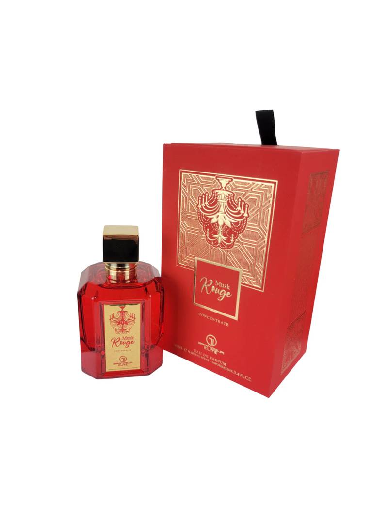 Musk Rouge Concentrate by Grandeur Eau de Parfum is an enchanting fragrance that epitomizes sophistication and sensuality. Its composition is a masterpiece of olfactory art, setting the stage with top notes of bergamot and amber, followed by a heart that boasts jasmine, saffron, and vanilla, all resting on a base of cedarwood, tonka bean, musk, and praline.