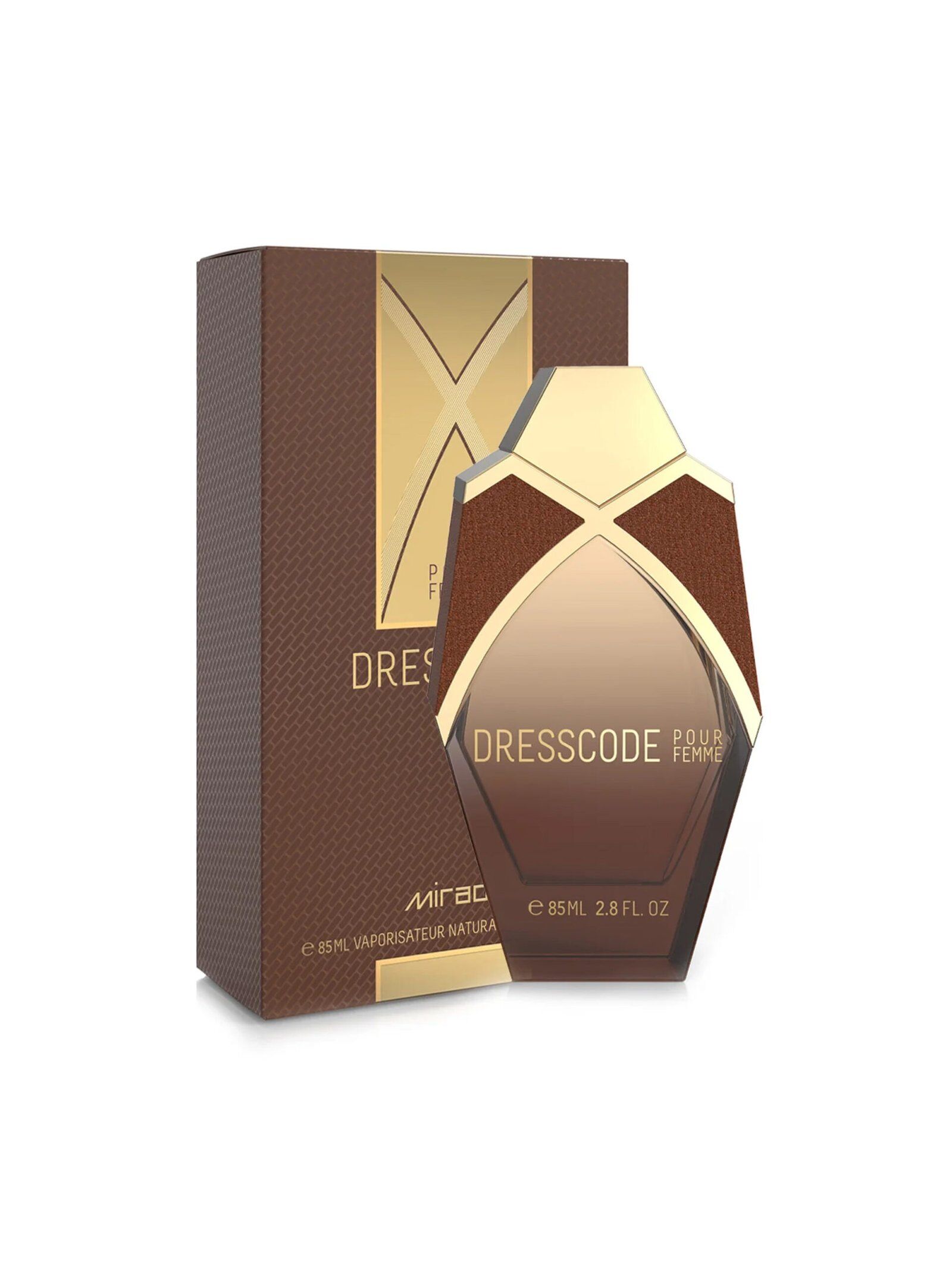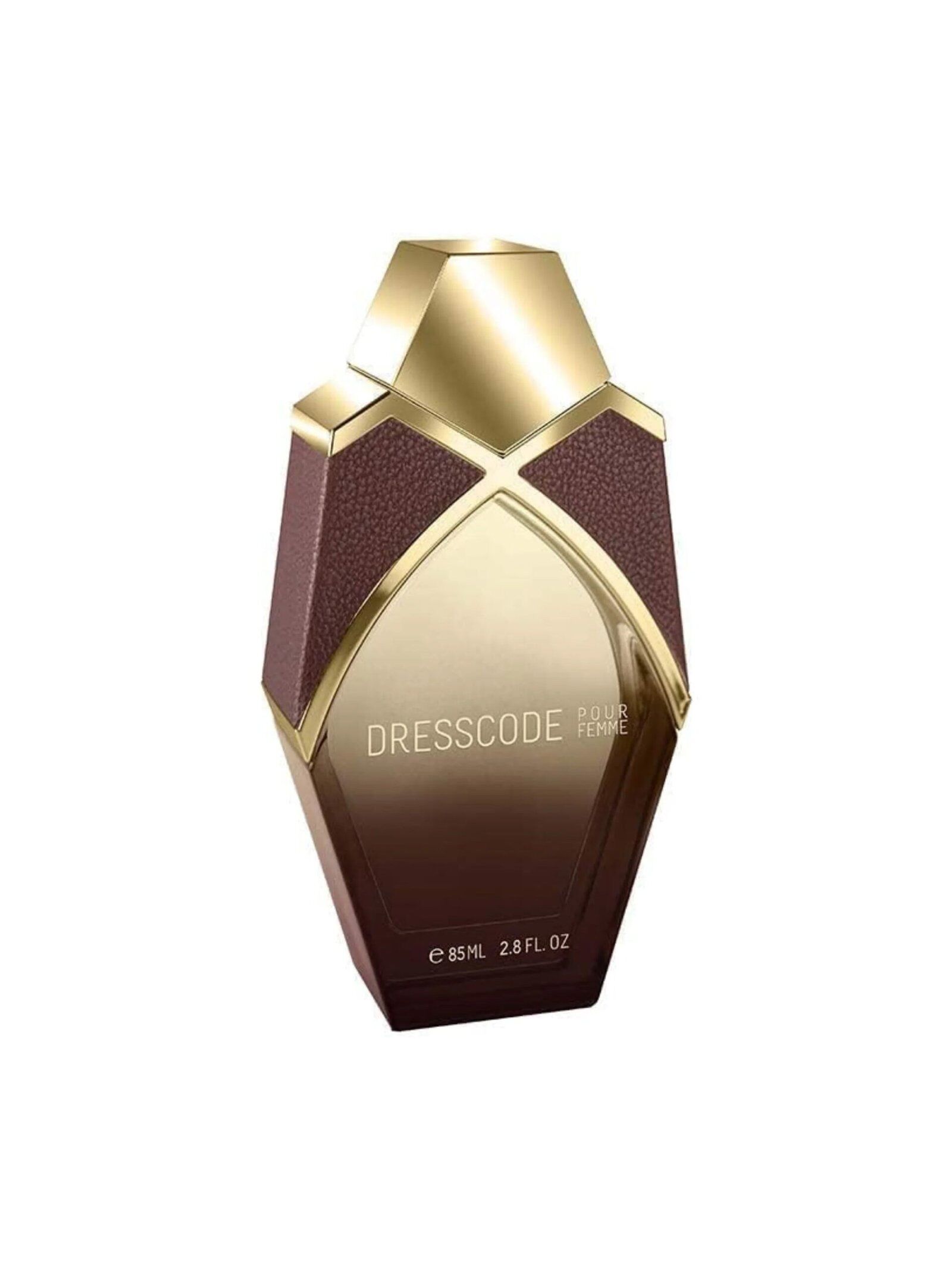 Dresscode for Women is sophisticated and feminine with modern elegance reflected in its design. A uniquely crafted glass bottle features a sensual fragrance, while the neck is wrapped with a brown leather collar.